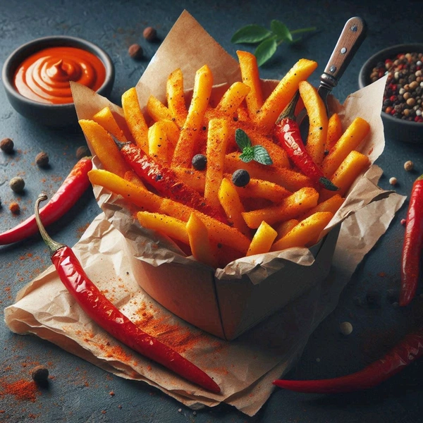 Enjoy our Masala French Fries, crispy and golden, infused with a special blend of spices. Each order comes with two small sauce packets to complement the flavor of the fries. Savor the warmth and deliciousness of our Masala French Fries, exclusively on OPIZZAS.COM!